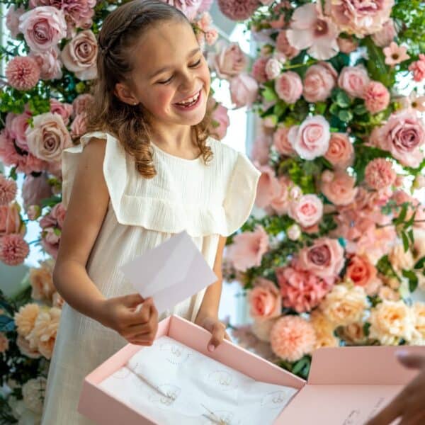 Elke Mini Bellyflower meisjes bloemenband wordt met de hand gemaakt en stijlvol verpakt in een luxe cadeauverpakking ideaal als blijvende herinnering aan een bijzonder moment.